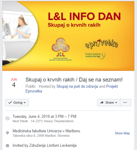 Hkrati pa bi Vas zelo rada povabila L&L info dan, kjer bo sama predstavitev akcije Daj se na seznam, nekaj predavanj, ob 18.00 pa tudi moja osebna pripoved – o izkušnji bolezni, ter o samem zdravljenju. Lepo vabljeni!